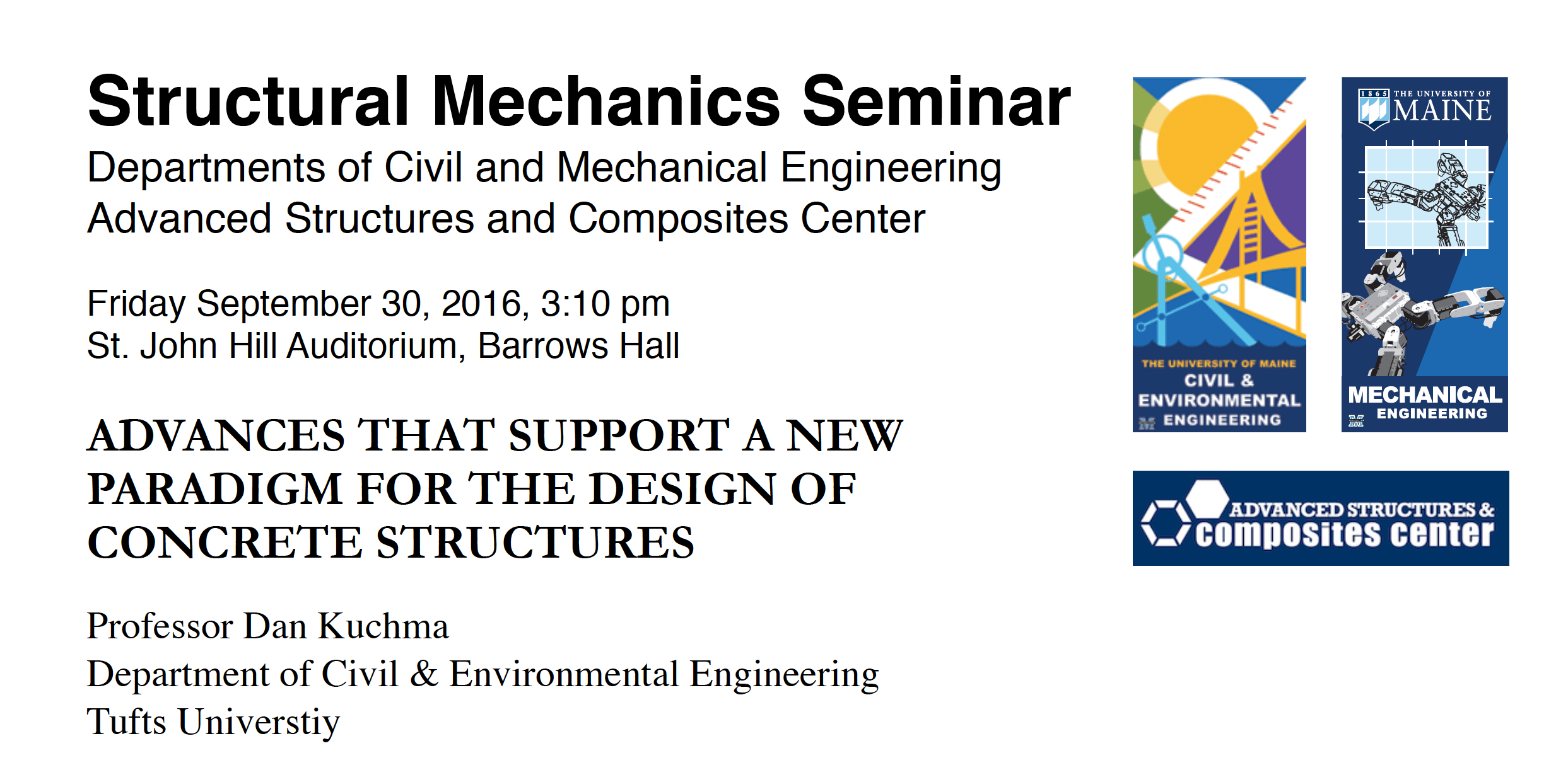 Seminar: “Advances That Support A New Paradigm for the Design of Concrete Structures” with Professor Dan Kuchma of Tufts University