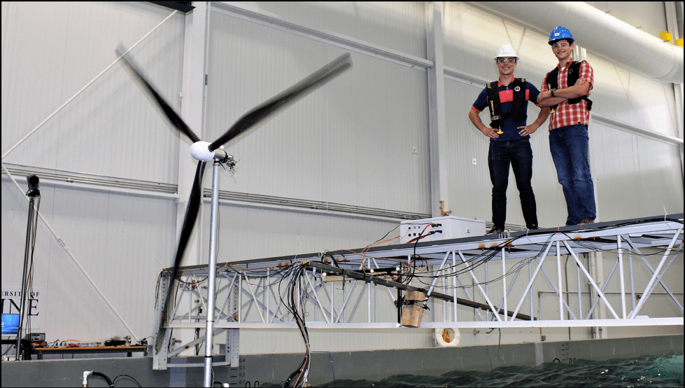 Eben and William have been working for the past ten months on improving the VolturnUS, a floating offshore wind turbine. They used a new technology to increase the longevity of floating wind turbine platforms.