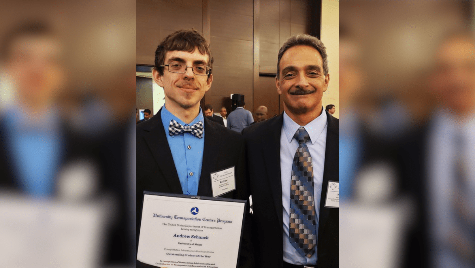 ORONO, Maine — Andrew Schanck of Bangor, a Ph.D. student in civil engineering at the University of Maine, was recognized with an Outstanding Student of the Year award by the U.S. Department of Transportation for his exceptional research efforts with the Transportation Infrastructure Durability Center at the University of Maine, a U.S. DOT Region 1 UTC.