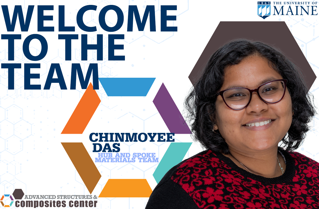 ORONO, Maine ? The Advanced Structures and Composites Center (ASCC) is constantly searching for Postdoctoral Research Assistants to expand our team’s talents. With this, we are pleased to announce the recent hire of Dr. Chinmoyee Das as a new Postdoctoral Research Associate on the Hub and Spoke Materials Team.