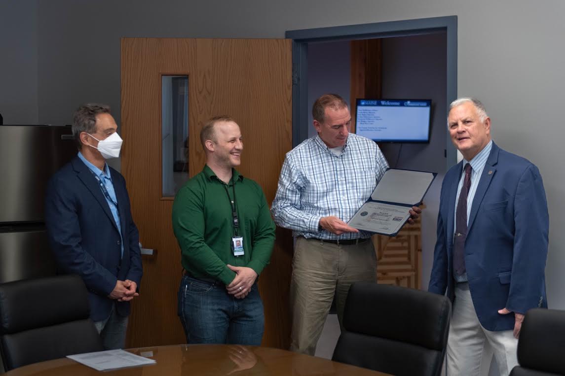 Attendees at the ceremony included Brig. Gen. (Retired) Diane Dunn, senior advisor for special initiatives to University of Maine President Joan Ferrini-Mundy; ASCC Executive Director Habib Dagher; ASCC Chief Operating Officer, Peter Drown; ASCC Special Advisor for Administration Amber Seany; and members of the ASCC communications team.