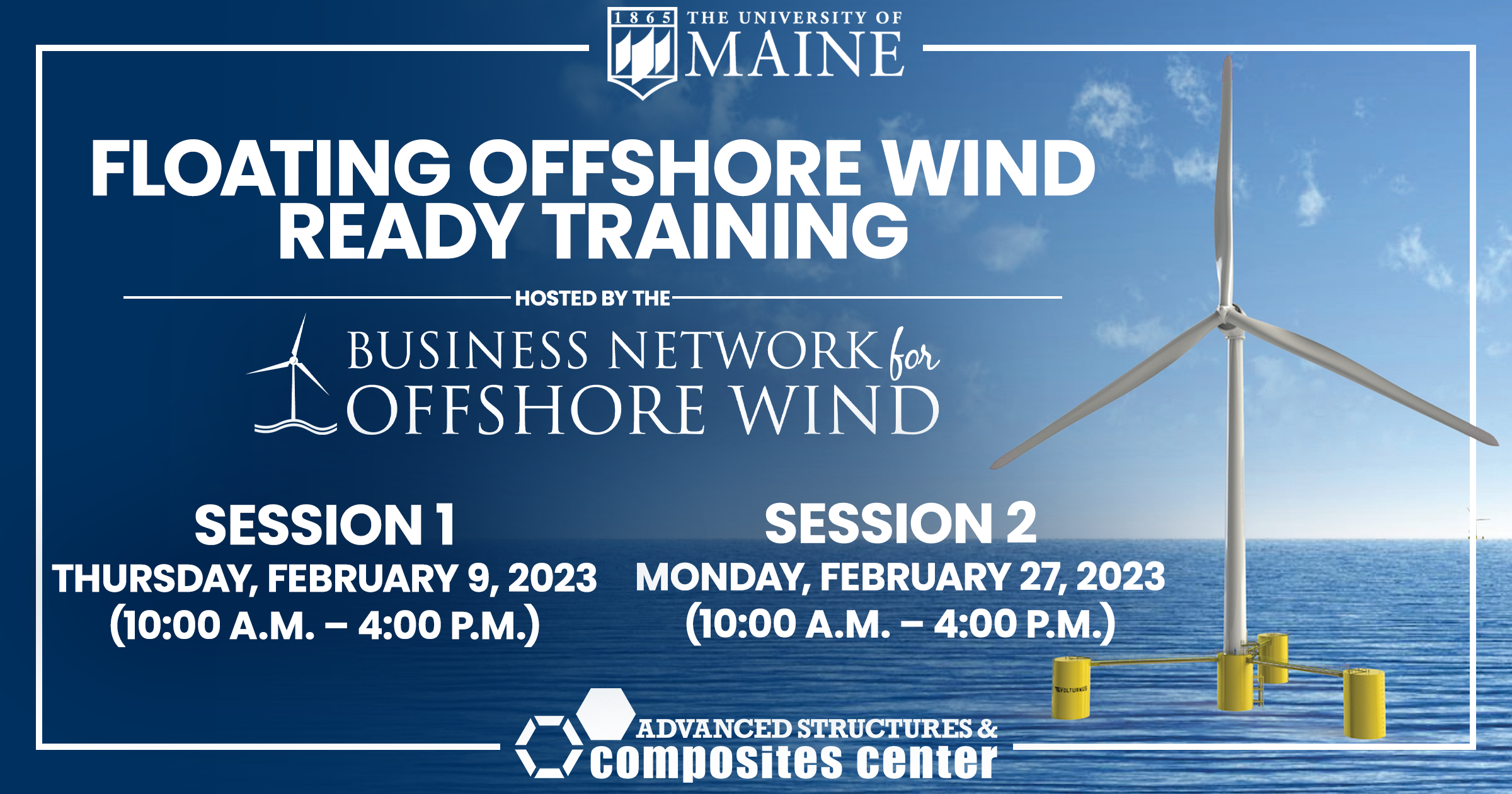 Orono, Maine — The Maine Governor’s Energy Office and the Maine International Trade Center are sponsoring two Floating Offshore Wind Ready trainings in February. The trainings, hosted by the Business Network for Offshore Wind, are one-day educational programs designed for businesses who want to learn more about specific business opportunities in the growing U.S. floating offshore wind industry. Participants will learn about project development, a project’s supply chain component parts, and how to identify where your business may fit into the growing industry.