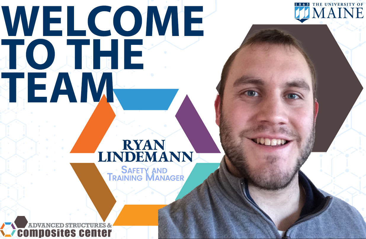 Orono, ME — The Advanced Structures and Composites Center (ASCC) is pleased to announce the recent hire of Ryan Lindemann as safety and training manager working with the Lab Operations Team.