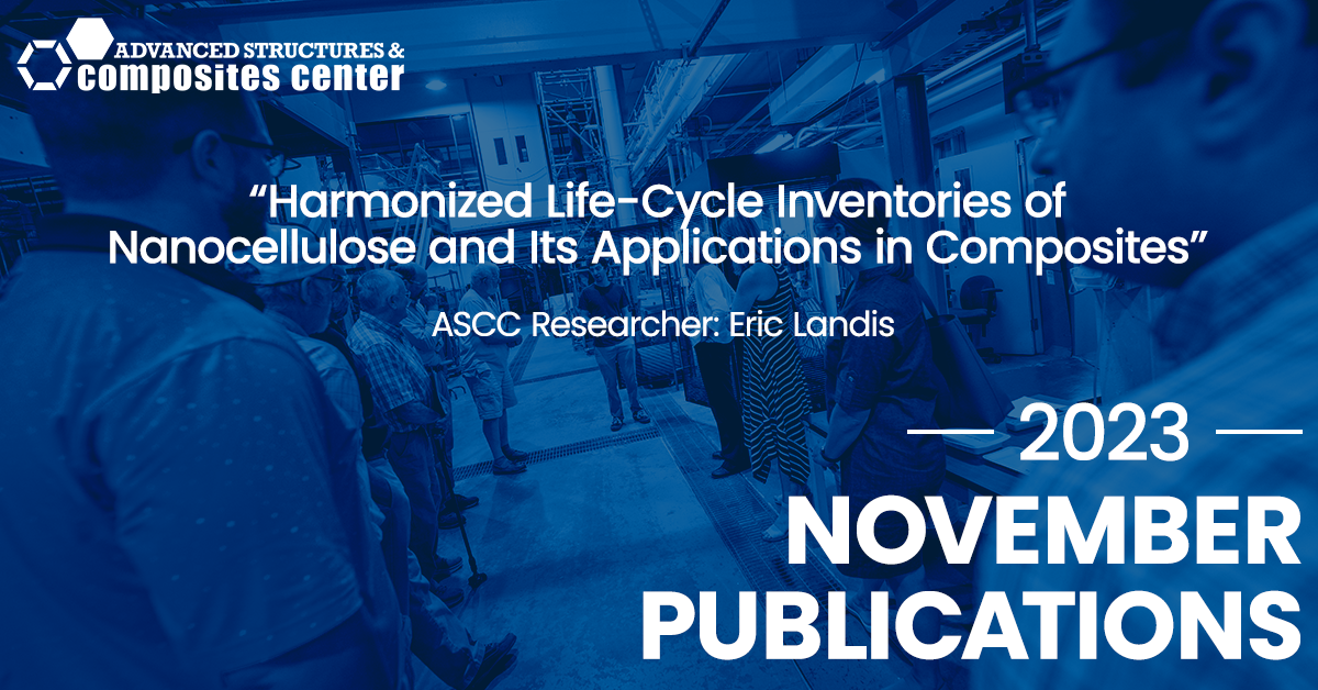 An article by Advanced Structures and Composites Center (ASCC) researcher Eric Landis has been published in Environmental Science & Technology. The publication titled “Harmonized Life-Cycle Inventories of Nanocellulose and Its Application in Composites” explores how nanocomposite materials like cellulose nanocrystals (CNC) and nanofibers (CNF) are broadly known to be renewable materials with low-emissions, but their research finds that when used in Portland cement their emissions are higher than traditional materials. This publication addresses consideration of the sustainability of the design process (in a variety of applications) when using CNC, CNF, or nanocomposite materials.