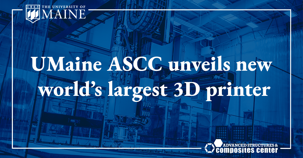 The University of Maine Advanced Structures & Composites Center (ASCC) unveils the world’s largest 3D printer.