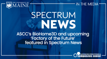 The Advanced Structures and Composites Center’s (ASCC) was featured in a Spectrum News article titled, “Homes from a 3D printer? It’s here, courtesy of the ‘Factory of the Future’ at UMaine Orono.” Featuring the technology behind the world’s first 100% bio-based 3D printed house, BioHome3D! “Our mission is to bring green energy and materials to […]