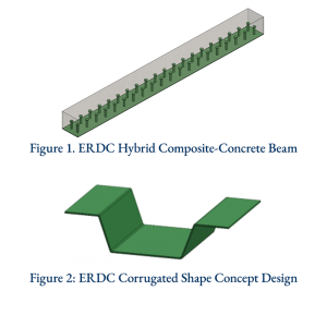The Composite-Concrete Beam technology uses hybrid thermoplastics in which the beam is outfitted with welded shear studs. This research was commissioned by the Engineering Research and Development (ERDC) of the U.S. Army Corps of Engineers for the development of a stiffened panel system for use in load-bearing hybrid composite-concrete structures.