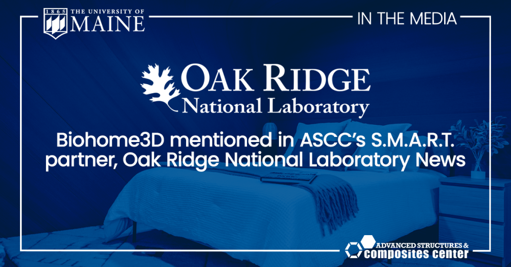 The Sustainable Materials and Manufacturing Alliance for Renewable Technologies (or SM²ART) is a collaborative initiative between the Department of Energy’s Manufacturing Demonstration Facility (MDF) at Oak Ridge National Laboratory (ORNL) and the Advanced Structures and Composites Center (ASCC) at the University of Maine (UMaine). The innovative research performed between these two world-class research facilities combined with industry guidance focuses on forest-derived bioproducts with an emphasis on large-scale additive manufacturing.