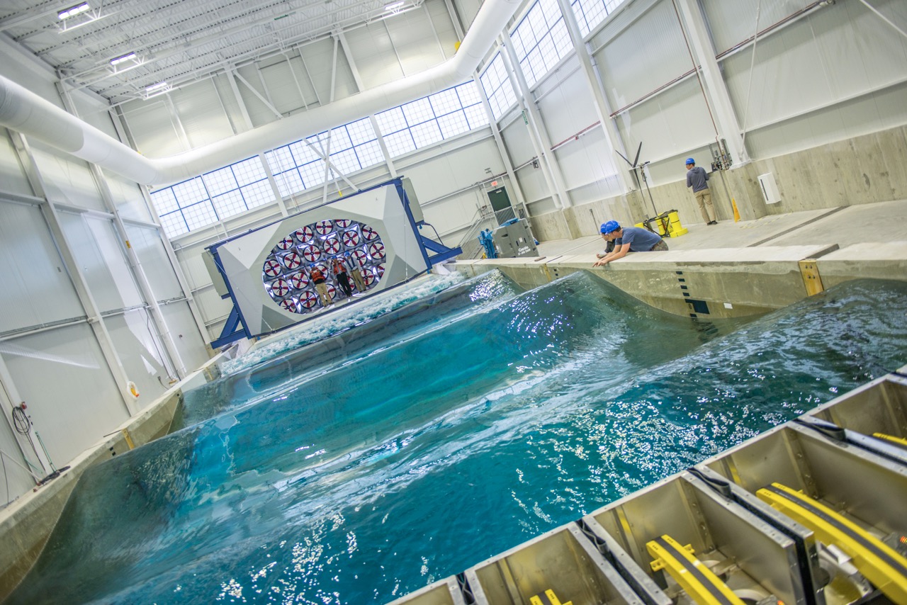 The Ocean Engineering & Energy team is researching and developing innovative solutions to address climate change. Research is conducted in a state-of-the-art facility that includes the Alfond W2 (wind wave) Ocean Engineering Lab. The W2 is equipped with a high-performance rotatable wind machine over a multi-directional wave basin. The facility accurately simulates tow tests, variable water depths, and scaled wind and wave conditions that represent some of the worst storms possible anywhere on earth.