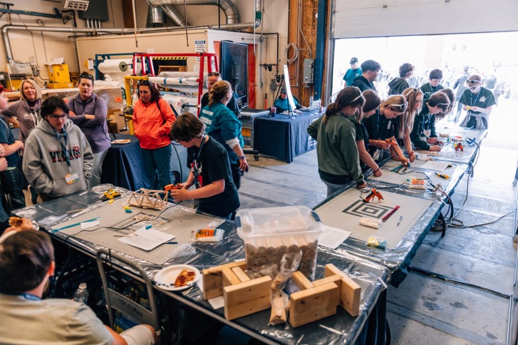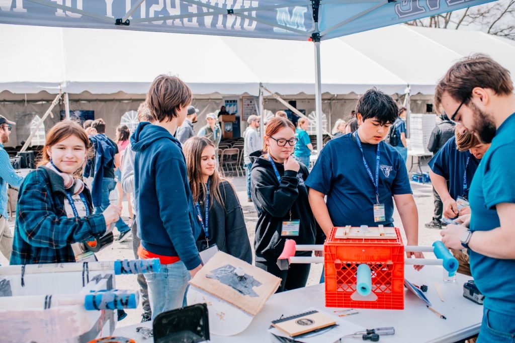 In conjunction with the Windstorm Challenge, the Advanced Structures and Composites Center hosts a STEM Carnival, providing students with a full and free day of hands-on engineering fun alongside UMaine’s black bear engineers. The event showcases the practical applications of STEM principles, offering an engaging experience for participants.