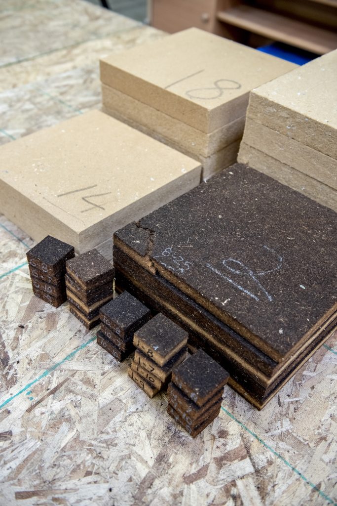 Since 2018, UMaine and TimberHP have partnered on R&D programs and prototyping efforts evaluating the effect of various manufacturing parameters, adhesives (including bio-based) types, and loading on the mechanical and physical properties of WFI.